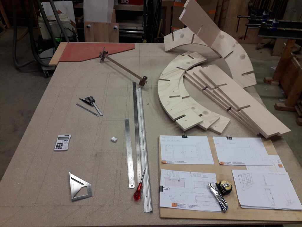 Avant de se mettre à l’atelier, votre artisan a dû bien analyser votre demande et la traduire dans son langage technique. Cela fait l’objet soit de croquis ou de visuels plus élaborés, soit parfois de visuels en 3D et dans tous les cas, de plans de fabri- cation ou d’épures (plans sur gabarits).