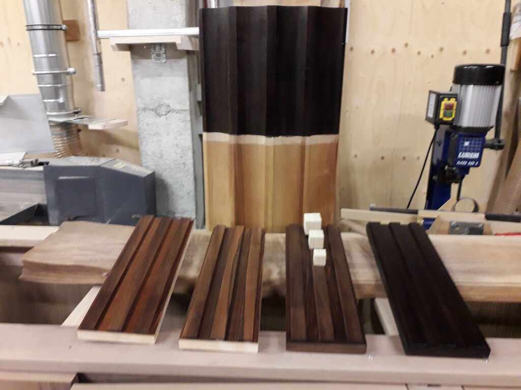 plinthe parement noyer massif dédoublé ( 6mm) avec suivit de fil du bois